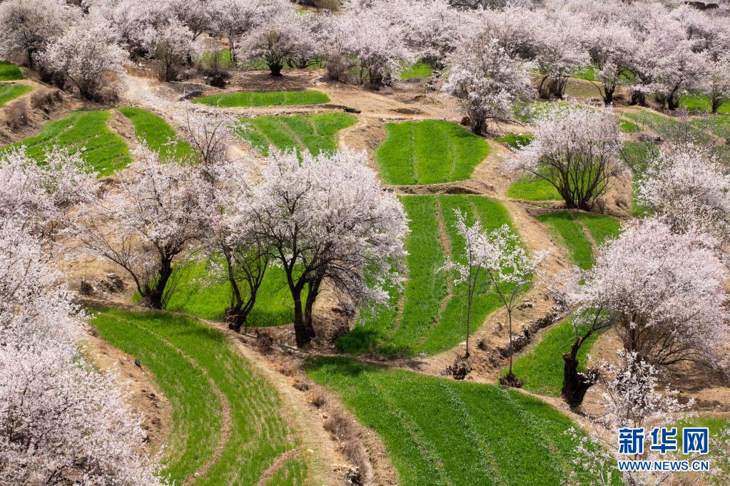 4月3日,在得榮縣白松鎮(zhèn)奪松村,當?shù)夭刈迦罕娫诖焊o人機照片)。新華社記者 江宏景 攝