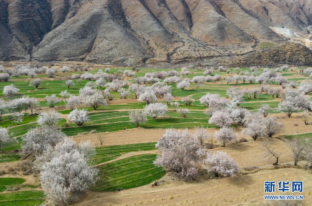近日,四川省甘孜藏族自治州得榮縣境內(nèi)成片的野生桃花從河谷到山腰次第開放,漫山遍野的桃花與雪山、麥地、白藏房等構成高原上美麗的“世外桃園”畫卷。
