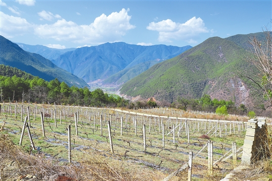 在德欽縣云嶺鄉(xiāng)斯農村,從房前屋后直到高山腳下,整齊的葡萄架綿延成片,種植面積已達1035畝。從2012年起,香格里拉酒業(yè)和梅里酒莊等企業(yè)和該村達成長期合作,小葡萄成了184戶村民的“致富果”。