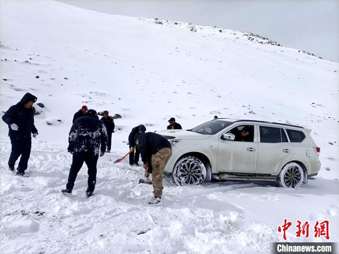 日前,青海省南部的三江源區(qū)域多地降雪,當(dāng)?shù)厣鷳B(tài)管護(hù)人員開啟艱難的風(fēng)雪巡山路。據(jù)悉,青海省玉樹藏族自治州曲麻萊縣約改鎮(zhèn)崗當(dāng)村的生態(tài)管護(hù)人員,野外巡山途中,大雪封山車輛被困。生態(tài)管護(hù)人員清雪無果,便徒步抄小道抵達(dá)巡護(hù)目的地。返程時,當(dāng)?shù)啬撩裼媚ν熊噷⑸鷳B(tài)管護(hù)人員送至車輛旁邊。