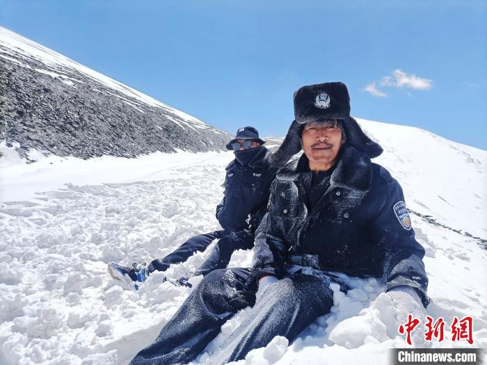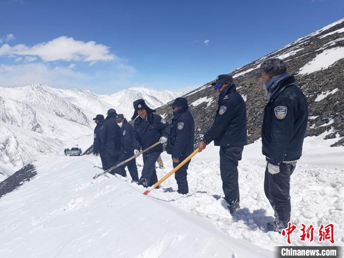 圖為清雪時的生態(tài)管護(hù)人員。丁巴達(dá)杰 攝
