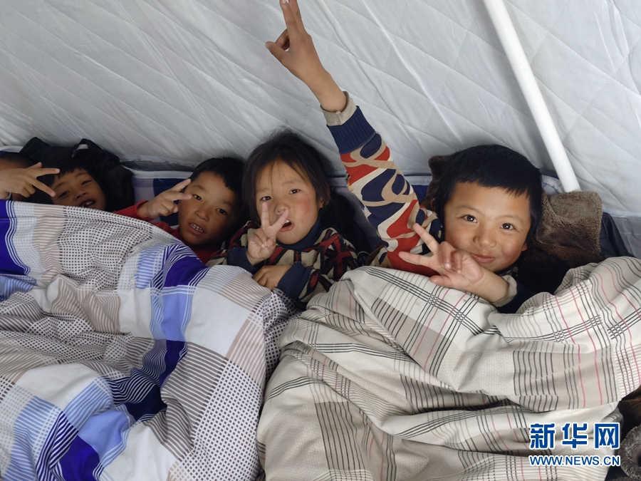 “帳篷里挺暖和,老師們都陪著我們,現(xiàn)在很安心,不覺得害怕?!本拍昙壱话鄬W(xué)生扎西東周說。