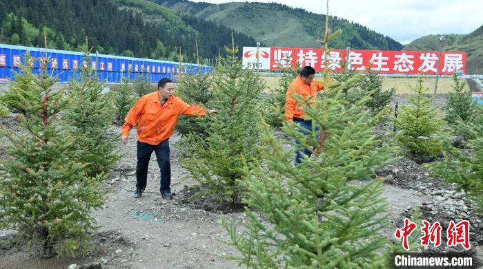 記者在試驗基地現(xiàn)場看到,因施工開挖的草甸被切割成正方形,整齊堆放在一起,通過噴淋系統(tǒng)不時澆水。一旁的表土養(yǎng)護及苗木驗證試驗基地上,因施工開挖的表土也被集中堆放、攤平,經(jīng)過營養(yǎng)培育后,栽種了白樺、冷杉、側(cè)柏、高山柳等多種高原樹木。