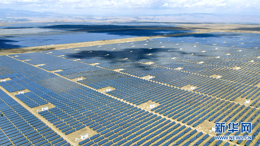 青海省海南藏族自治州共和縣塔拉灘綠色產(chǎn)業(yè)發(fā)展園區(qū)內(nèi)一望無(wú)際的光伏發(fā)電板。新華網(wǎng) 卡婭梅朵 攝