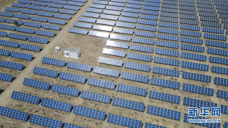 青海省海南藏族自治州共和縣塔拉灘綠色產(chǎn)業(yè)發(fā)展園區(qū)內(nèi)的光伏電站(無(wú)人機(jī)照片)。新華網(wǎng) 卡婭梅朵 攝