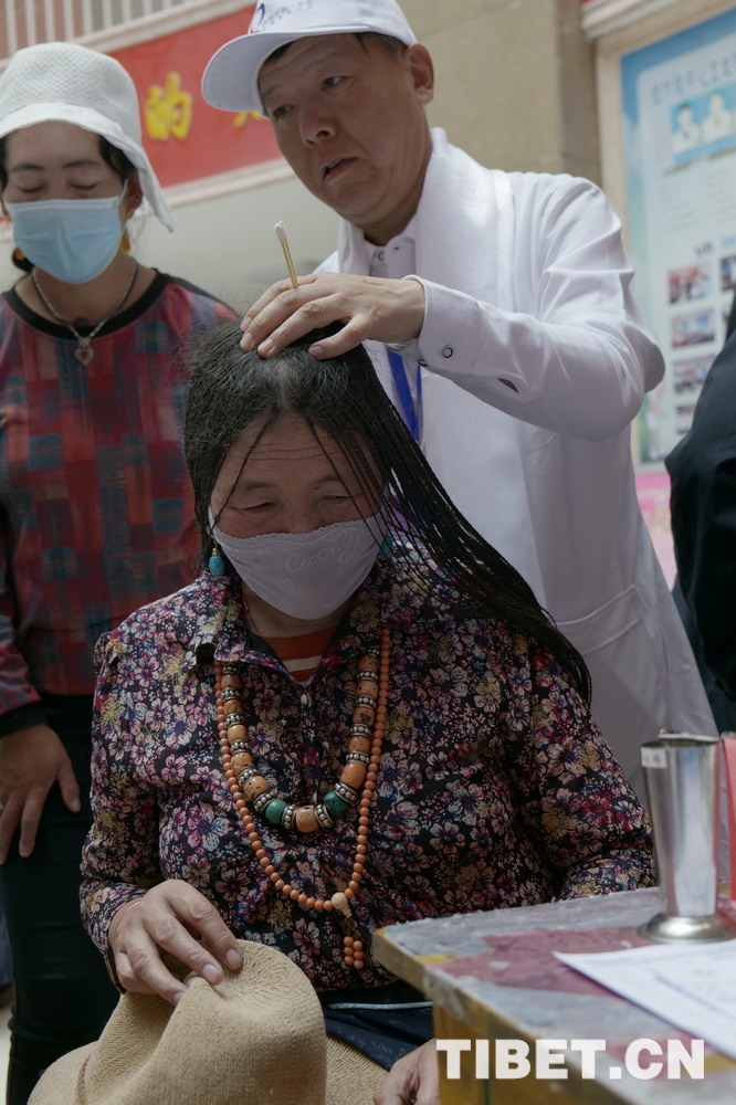 一位就診的女患者右腿小腿部滿凹凸不平,趙臣來在她的小腿上、頭部后側(cè)扎了針,并讓她走幾步看看,“這是骨關(guān)節(jié)炎,您平時(shí)注意不要受風(fēng)著涼,坐的時(shí)間別太長(zhǎng),可以坐得稍高一點(diǎn),也不要深蹲……我再給您開些藥吧。”不一會(huì)兒,這位女士說稍有緩解,不禁連連稱謝:“瓜珍切”(藏語“謝謝”)。這真是太神了!