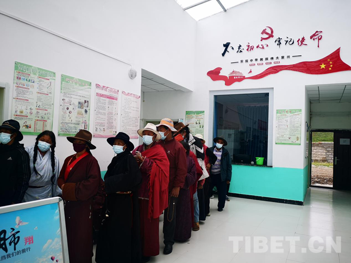 圖為達日縣建設(shè)鄉(xiāng)排隊就診的群眾 (組委會供圖)