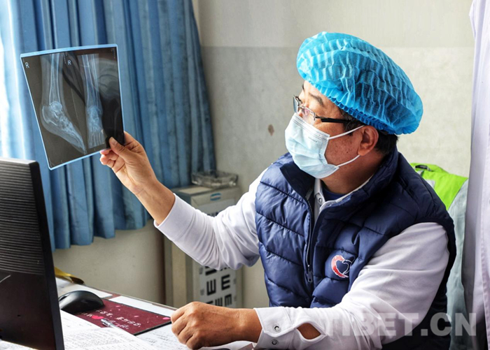 “您母親的踝關(guān)節(jié)情況不容樂觀,建議馬上手術(shù),不要再吃藥了,這非但沒有幫助還會引起腸胃疾病。”這句簡短的醫(yī)囑是在王安慶一邊吸氧一邊極力調(diào)整呼吸的情況下完成的。對于那些初入高海拔地區(qū)義診的醫(yī)生來說,他們本身也受到高原反應(yīng)的困擾,這點(diǎn)王安慶很清楚。但是看到科室門口等待救治的患者,他沒有辦法讓自己停下來。