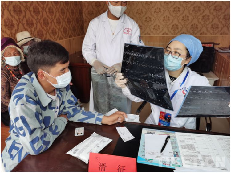 閆靜文醫(yī)生因為高原反應(yīng)昨晚沒有休息好,她的診室在第一個,一上午看了將近30名患者。令閆醫(yī)生印象深刻的是有一個12歲的小女孩,腦膜都有結(jié)核了,肺部都鈣化了。閆醫(yī)生說,現(xiàn)在國家都是免費治療結(jié)核病,建議她按時服用國家免費發(fā)放的治療結(jié)核病的藥,結(jié)核病是可以治愈的。