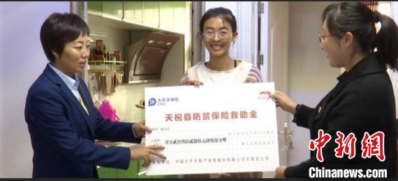 圖為天??h首批理賠的“防貧保”資金到位。天??h委宣傳部供圖