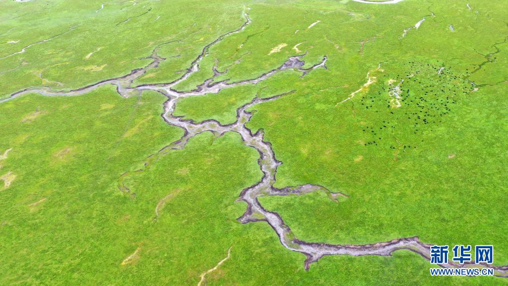 這是7月15日拍攝的瑪曲縣阿萬倉濕地(無人機照片)。新華社記者 文靜 攝