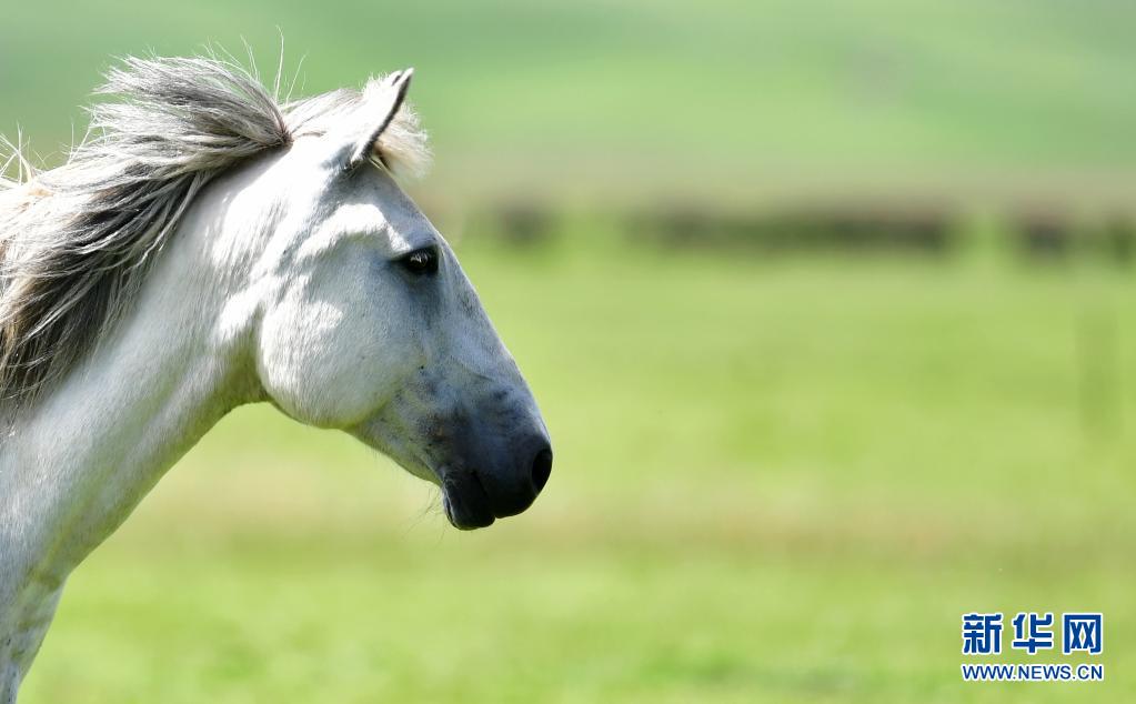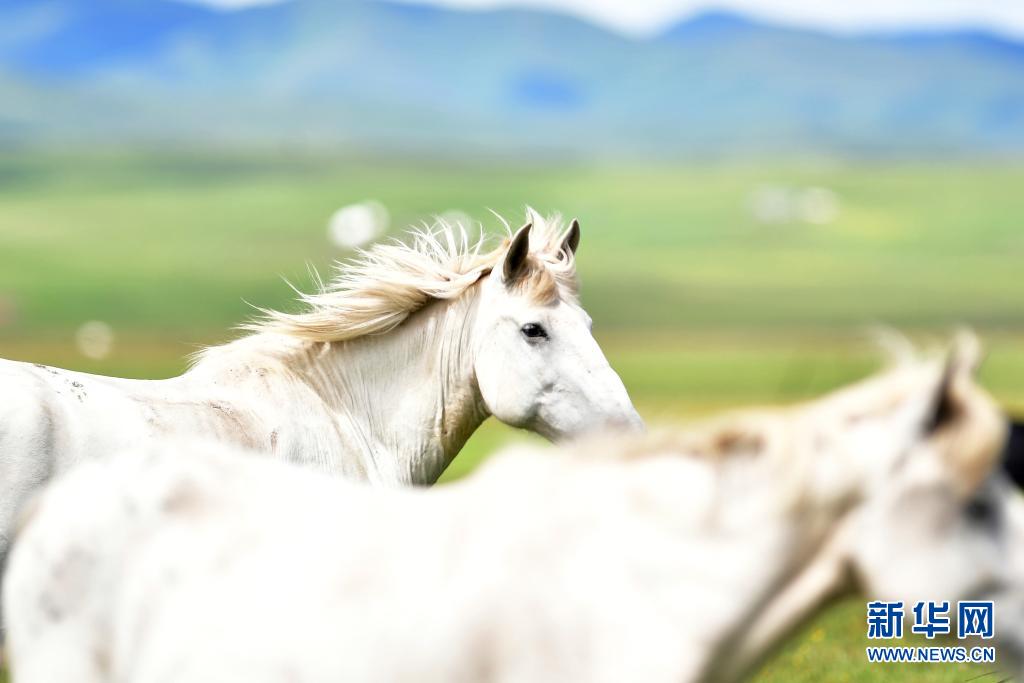 這是7月15日在甘肅瑪曲縣河曲馬場(chǎng)拍攝的河曲馬。新華社記者 杜哲宇 攝