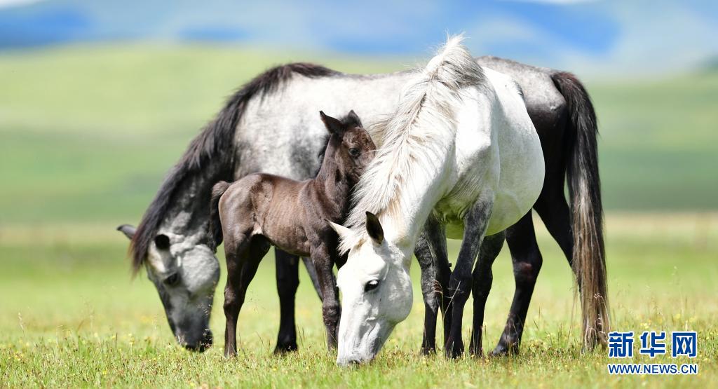 這是7月15日在甘肅瑪曲縣河曲馬場(chǎng)拍攝的河曲馬。新華社記者 陳斌 攝