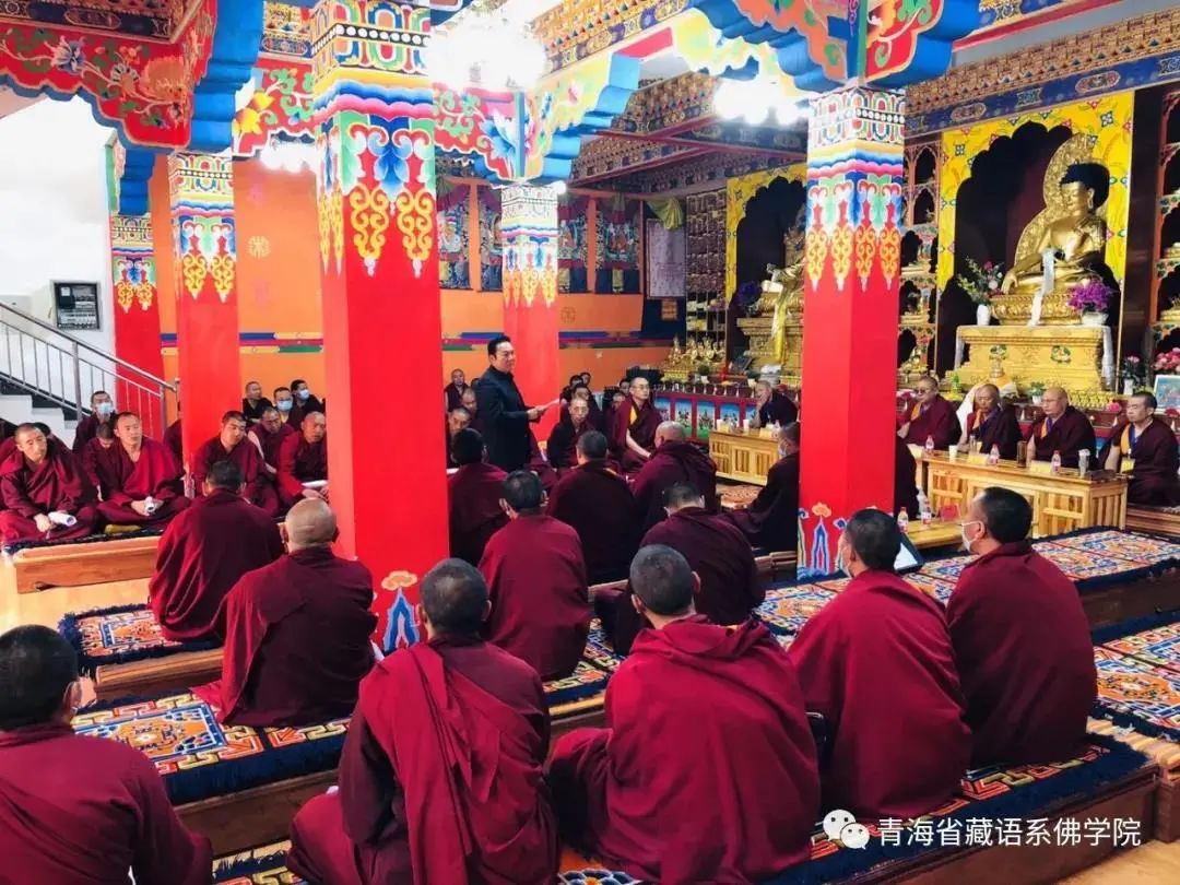 省藏語系佛學(xué)院2016年易地搬遷以來,堅持正確方向,提高辦學(xué)水平,不斷加強(qiáng)學(xué)院規(guī)范化建設(shè),聘請各教派著名格西、堪布從9名到現(xiàn)在15名,招生規(guī)模持續(xù)擴(kuò)大,教職工隊伍茁壯成長,現(xiàn)代與傳統(tǒng)相結(jié)合的辦學(xué)優(yōu)勢日益凸顯,社會認(rèn)可度、學(xué)修知名度、信眾引導(dǎo)力逐步提升,正在成為我省藏傳佛教愛國愛教僧才培養(yǎng)的主陣地。黃南州同仁市隆務(wù)寺格西云旦尖措,作為學(xué)院的“忠誠好友”,長期關(guān)注學(xué)院的發(fā)展,積極支持學(xué)院的各項工作,對于學(xué)院各項工作取得的成績深有體會,對于學(xué)院未來的發(fā)展充滿希望。他說:“青海佛學(xué)院的體系是非常完備的,學(xué)員也都清凈守法、勤學(xué)精進(jìn),對此我感到非常欣慰,這將對藏傳佛教、藏族文化、涉藏州縣社會和廣大信眾都有很大益處。希望今后省佛學(xué)院繼續(xù)與青海的各教派寺院加強(qiáng)聯(lián)系,齊心協(xié)力提升教育水平,省佛學(xué)院必將越辦越好?!?/p>