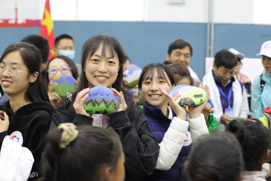 活動(dòng)現(xiàn)場(chǎng),福利學(xué)校的孩子們將親手制作的石頭畫送給成長(zhǎng)營(yíng)的小老師們。受訪者供圖