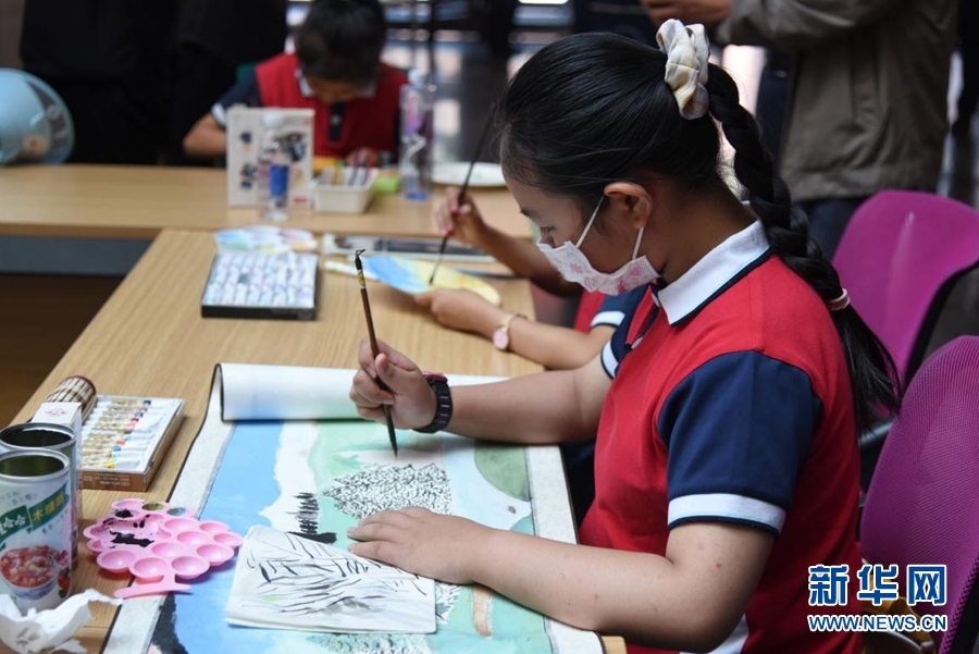 萌芽祁連山板塊現(xiàn)場(chǎng),小朋友正在作畫(huà)。新華網(wǎng) 齊雨萌 攝