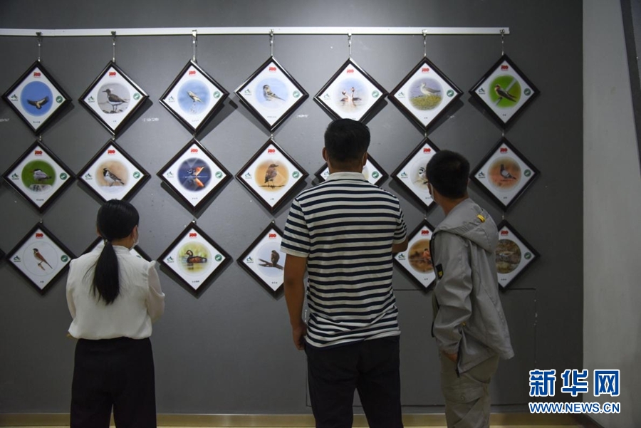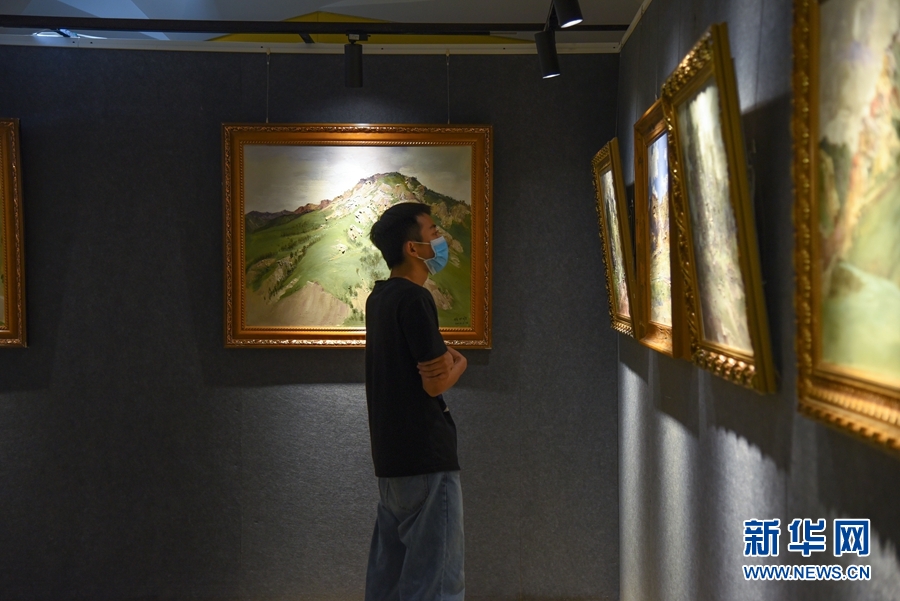 8月5日,觀眾在首屆祁連山國(guó)家公園青海片區(qū)生態(tài)藝術(shù)展欣賞展出的作品。新華網(wǎng) 齊雨萌 攝