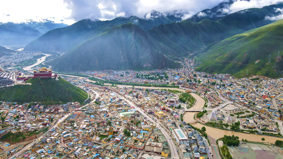 航拍青海省玉樹藏族自治州玉樹市。(2020年6月18日攝)新華網(wǎng) 潘彬彬攝