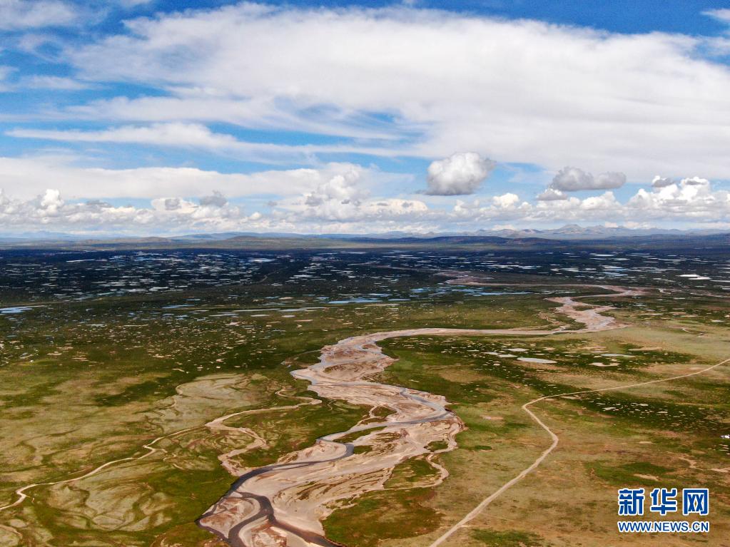 這是7月23日拍攝的長江源地區(qū)的查旦濕地(無人機照片)。新華社記者 張龍 攝