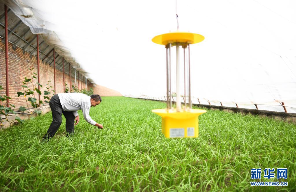 8月5日,魏金明在玉樹市結古鎮(zhèn)新寨村的蔬菜基地查看韭菜長勢。新華社記者 吳剛 攝