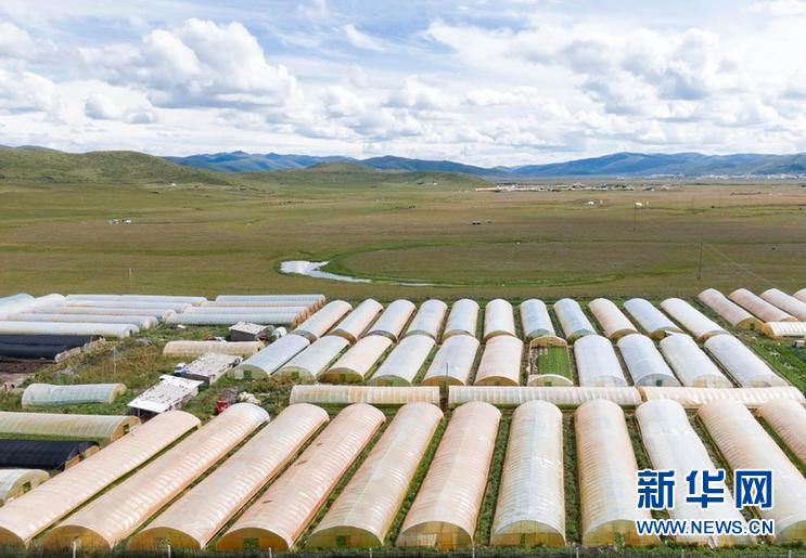 這是四川省阿壩藏族羌族自治州紅原縣邛溪鎮(zhèn)熱坤村的蔬菜大棚(8月13日攝,無人機照片)。新華社記者 江宏景 攝