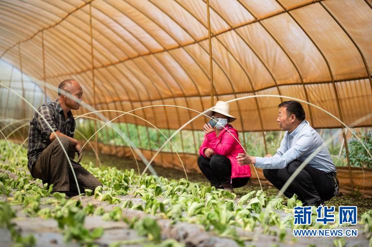 8月13日,在四川省阿壩藏族羌族自治州紅原縣邛溪鎮(zhèn)熱坤村的蔬菜大棚,農(nóng)業(yè)技術(shù)推廣研究員茍俊(右)在給蔬菜種植大戶答疑解惑。新華社記者 江宏景 攝