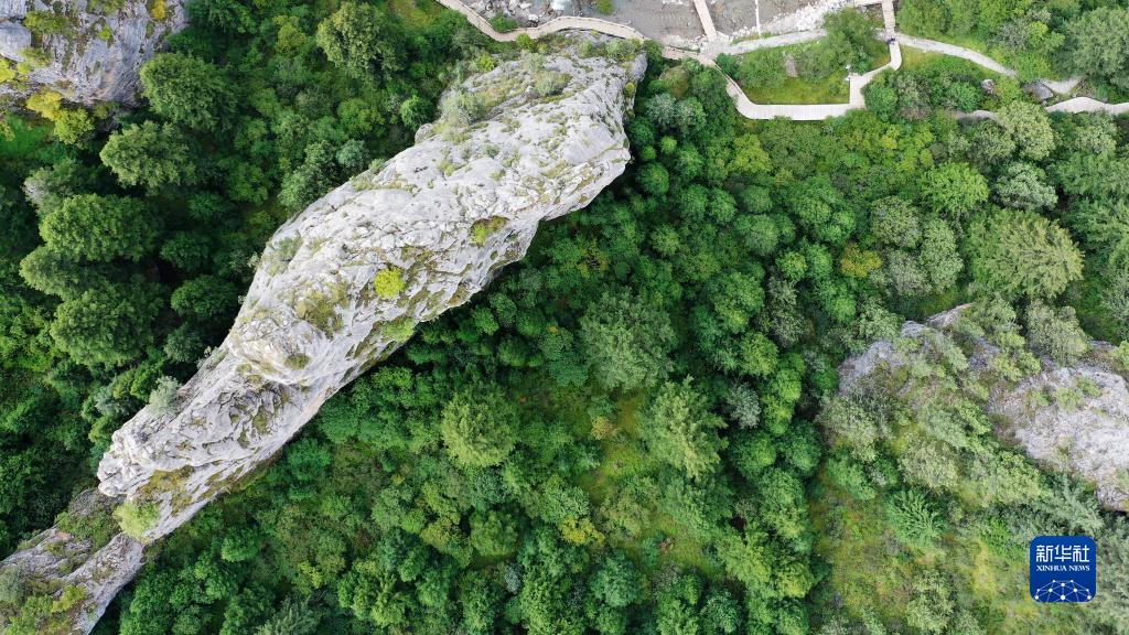 這是9月2日拍攝的則岔石林景區(qū)內(nèi)的森林(無人機照片)。新華社記者 陳斌 攝