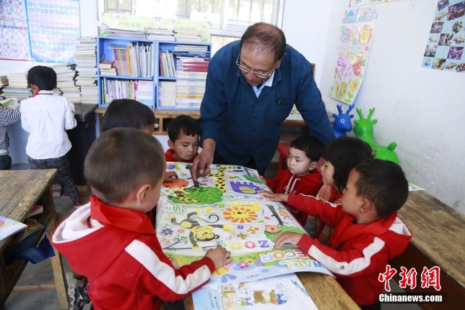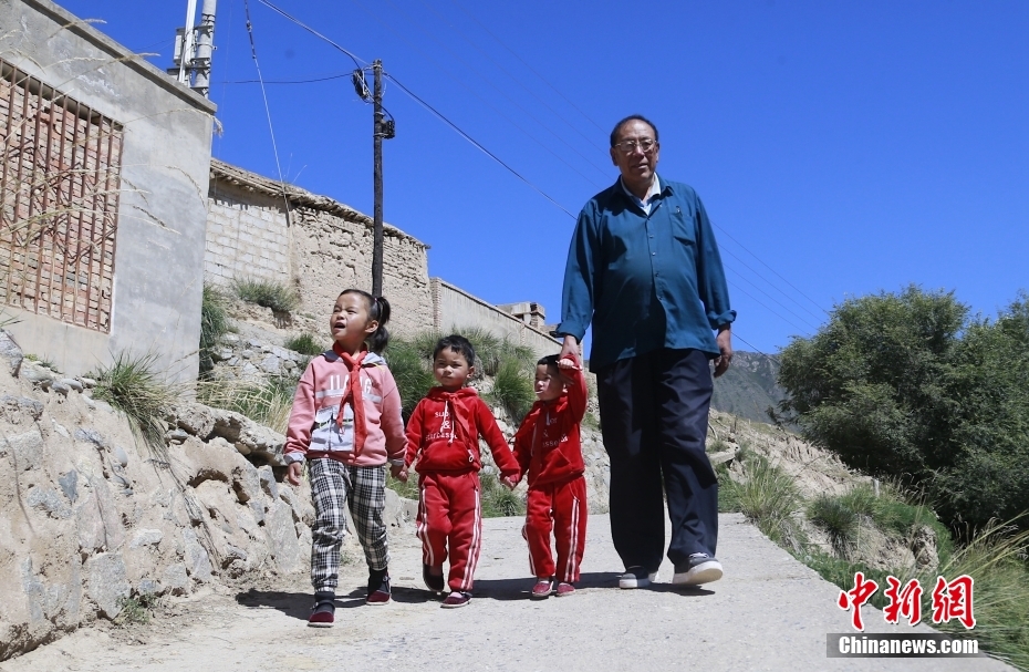 30年前他剛來學(xué)校時不會講當(dāng)?shù)氐娜隼逭Z言,村民也聽不懂他說的藏語。苦學(xué)兩年后,他便能用一口純正的撒拉語和大家溝通。中新社記者 馬銘言 攝