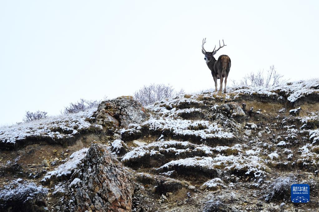 這是10月19日在三江源國家公園黃河源園區(qū)內拍攝的一只白唇鹿。新華社記者 張龍 攝