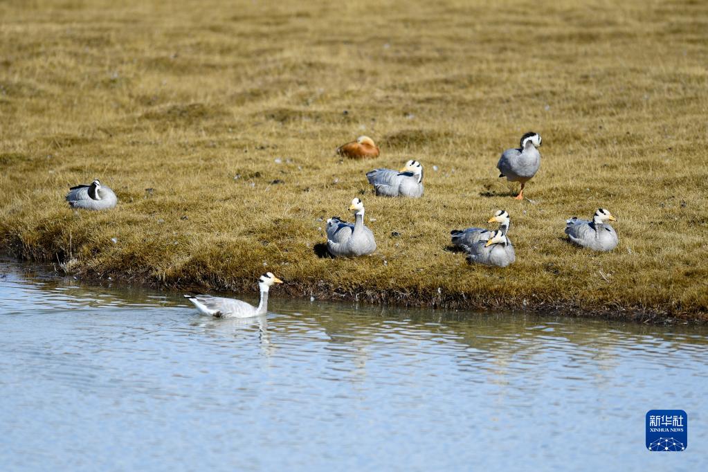 這是10月19日在三江源國家公園黃河源園區(qū)內拍攝的一群斑頭雁。新華社記者 李占軼 攝