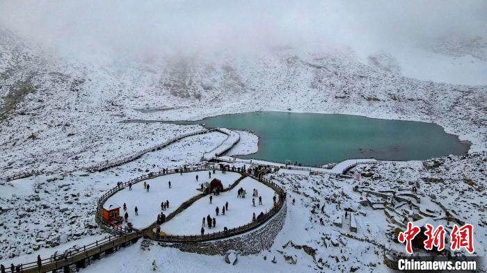 航拍達(dá)古冰川美麗的淚湖。肖蓉 攝