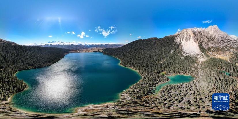 這是10月24日在四川甘孜巴塘縣措普溝景區(qū)內(nèi)拍攝的措普湖(無人機(jī)全景照片)。新華社記者 胥冰潔 攝