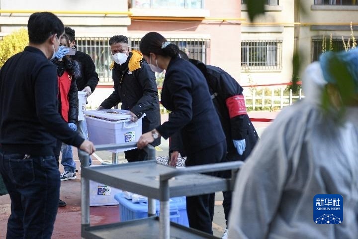 “大家辛苦了,快來拿飯吧,趁熱吃?!薄俺缘暮鹊亩加?,酸奶和牛奶每人一盒?!痹谖鲗幰咔榉揽匾痪€的核酸檢測點(diǎn),一位皮膚黝黑的藏族漢子和同事抬著箱子,忙前忙后為工作人員和志愿者遞上盒飯。看到大伙都吃上熱飯,臉上露出了爽朗的笑容。
