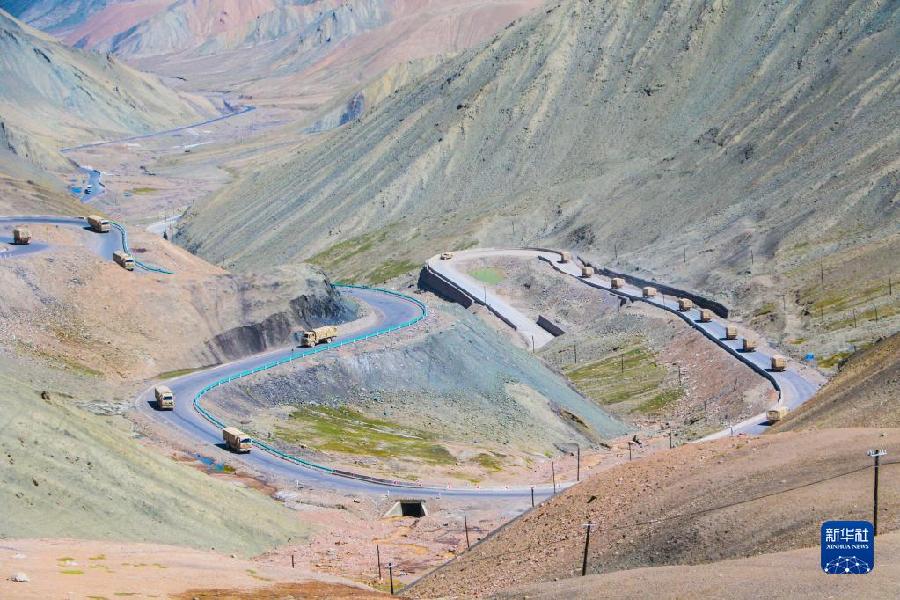 聯(lián)勤保障部隊汽車運輸某團(tuán)一營一連在執(zhí)行運輸任務(wù)(2020年8月7日攝)。新華社發(fā)