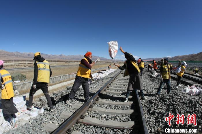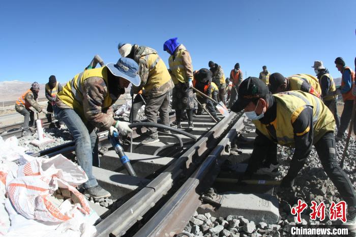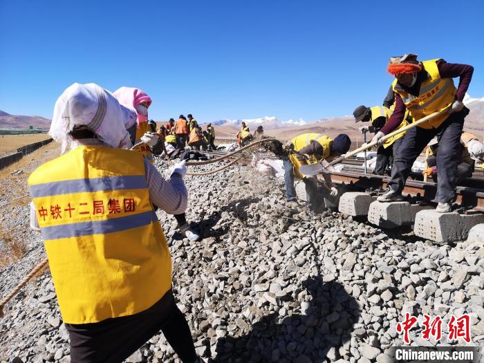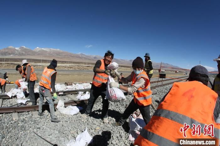 圖為工人在達(dá)瓊果站搬運(yùn)新砟。中鐵十二局集團(tuán)鐵路養(yǎng)護(hù)公司當(dāng)雄車間供圖
