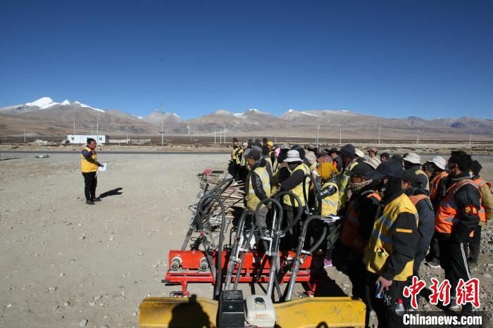 圖為當(dāng)雄車間主任郝二小在班前會(huì)上技術(shù)交底。中鐵十二局集團(tuán)鐵路養(yǎng)護(hù)公司當(dāng)雄車間供圖