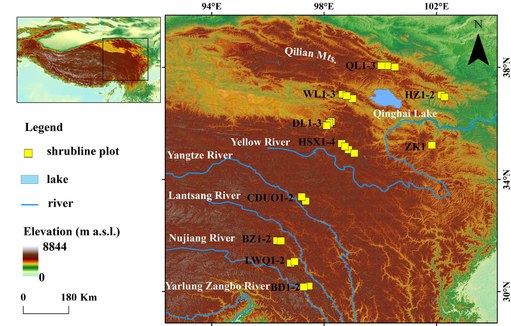 文章通訊作者、中科院青藏高原所研究員梁爾源介紹,高山灌木線是指灌叢分布的海拔邊界上限,被認(rèn)為是探索高寒生態(tài)系統(tǒng)對(duì)全球變化響應(yīng)與適應(yīng)的天然實(shí)驗(yàn)室和全球變暖的“預(yù)警線”。
