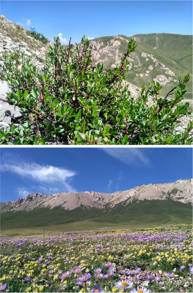 青藏高原山生柳灌木(上)和灌木線(下)景觀(中科院青藏高原所供圖)