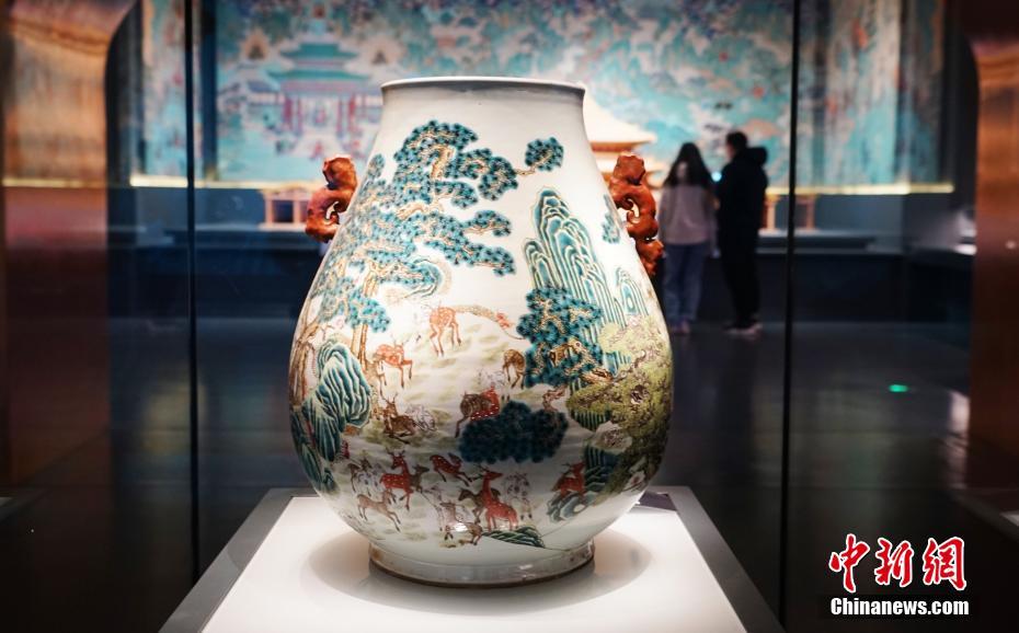 11月29日,位于青海省西寧市的青海省博物館展出粉彩百鹿紋瓷尊。當(dāng)日,青海省博物館經(jīng)一年半升級改造后開館并舉辦“1+3”主題展覽,160件藏品首次亮相。該展覽以青海歷史文物為主,青海非物質(zhì)文化遺產(chǎn)、考古成果、百年革命文物為輔,多角度展現(xiàn)地域歷史及民族文化。據(jù)了解,升級后的博物館上展文物1331件(套)/2405件,其中一級文物191件,珍貴文物248件(套),上展文物體量為青藏高原最大。 中新社記者 馬銘言 攝