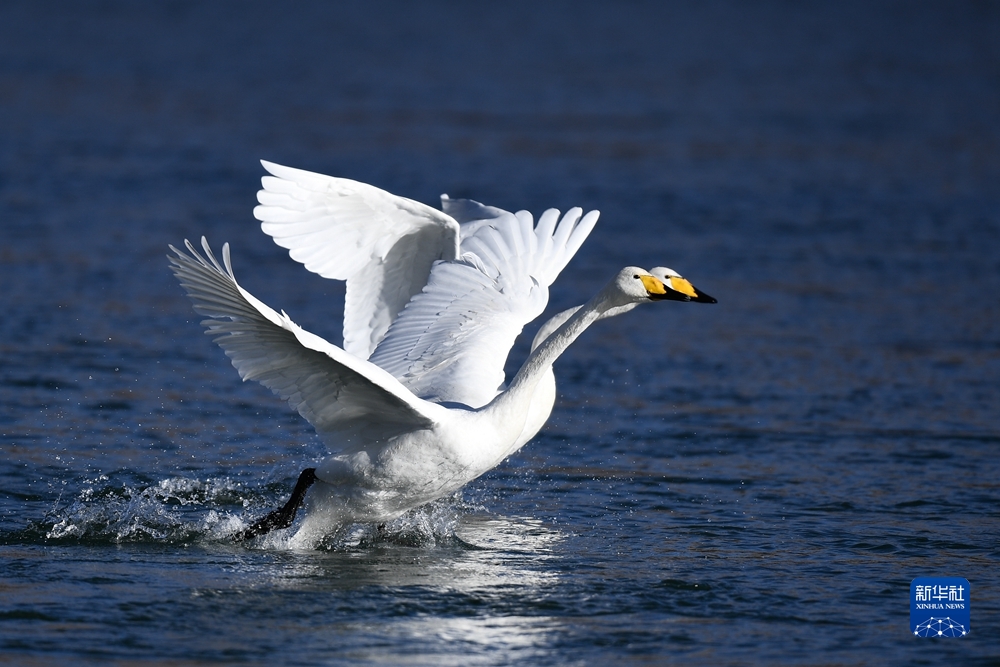 近日,前來(lái)越冬的近百只天鵝在青海省海南藏族自治州貴德縣境內(nèi)的黃河濕地覓食休憩,為冬日黃河帶來(lái)勃勃生機(jī)。近年來(lái),青海省加大力度保護(hù)治理境內(nèi)黃河流域,改善當(dāng)?shù)厣鷳B(tài)環(huán)境,為越冬候鳥(niǎo)提供良好棲息地。