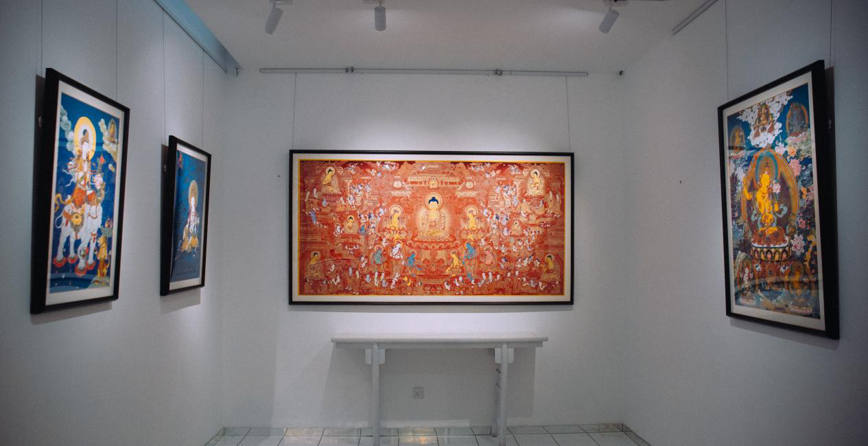 尕旦加木措唐卡藝術(shù)成就展現(xiàn)場。