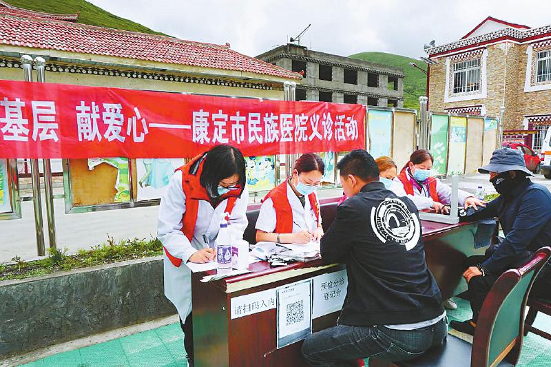 都江堰市第六批對(duì)口支援工作隊(duì)隊(duì)員、掛職康定市民族醫(yī)院副院長(zhǎng)的田梅等醫(yī)生在新都橋鎮(zhèn)開展義診活動(dòng)。