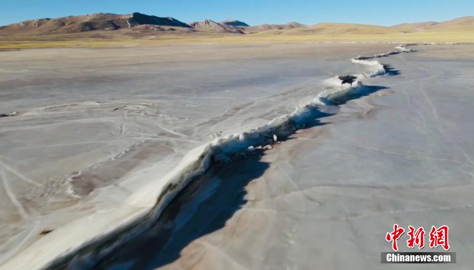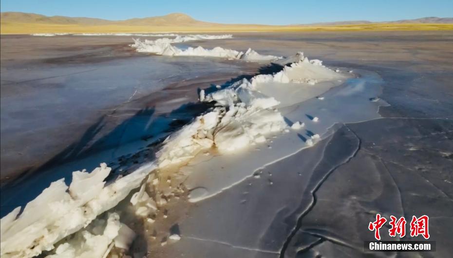 當(dāng)?shù)財z影愛好者用無人機航拍了班德湖封湖的壯美景色,如同冰上長城。吐旦丹巴 攝