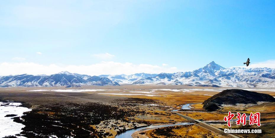 圖為航拍成群盤羊。贊慶 攝