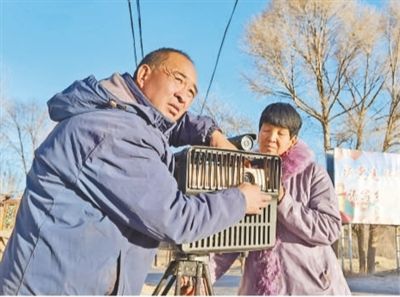 許國強(qiáng)、馬玉梅夫婦在調(diào)試電影放映設(shè)備。