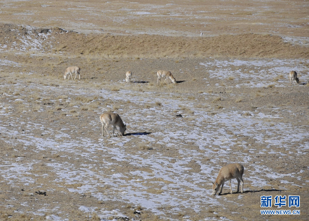 這是在可可西里拍攝的藏羚羊(1月20日攝)。新華社 潘彬彬 攝