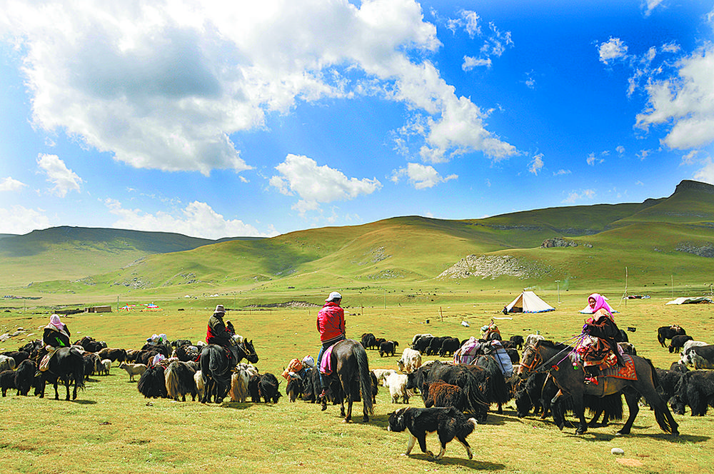 夏季轉(zhuǎn)場(chǎng)放牧。剛察縣宣傳部供圖