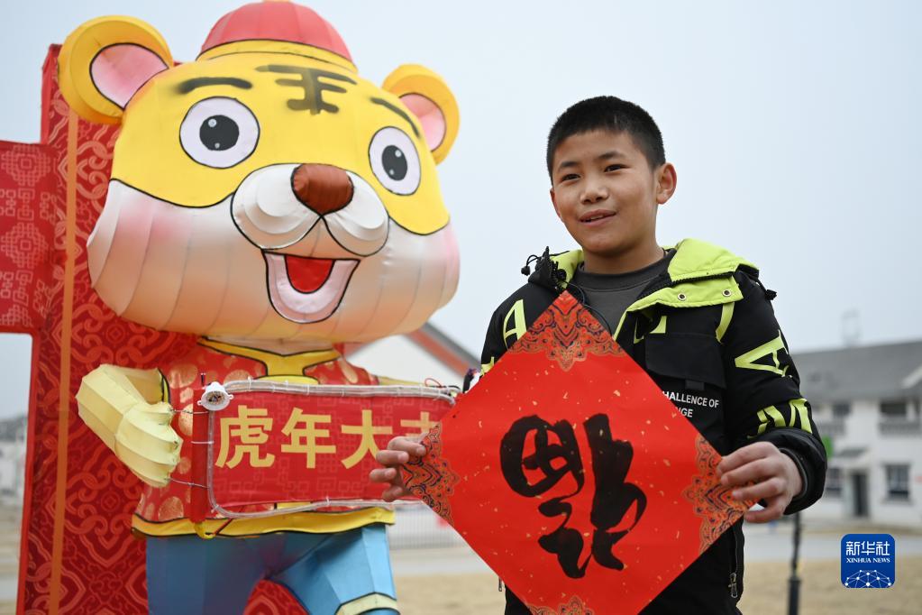 1月25日,在蘭州新區(qū)舟曲避險搬遷安置點,搬遷群眾展示領(lǐng)取的春聯(lián)。新華社記者 范培珅 攝