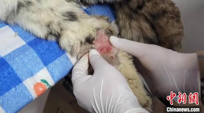圖為雪豹右后腿受傷。都蘭縣融媒體中心 供圖