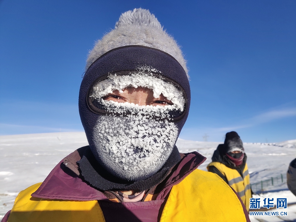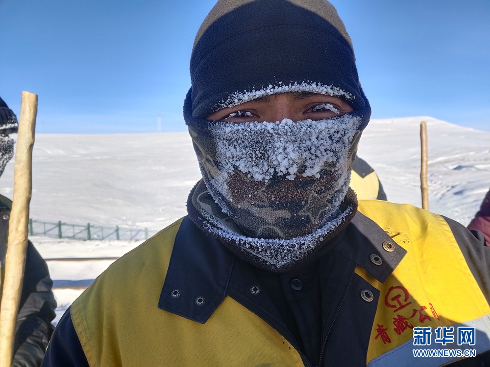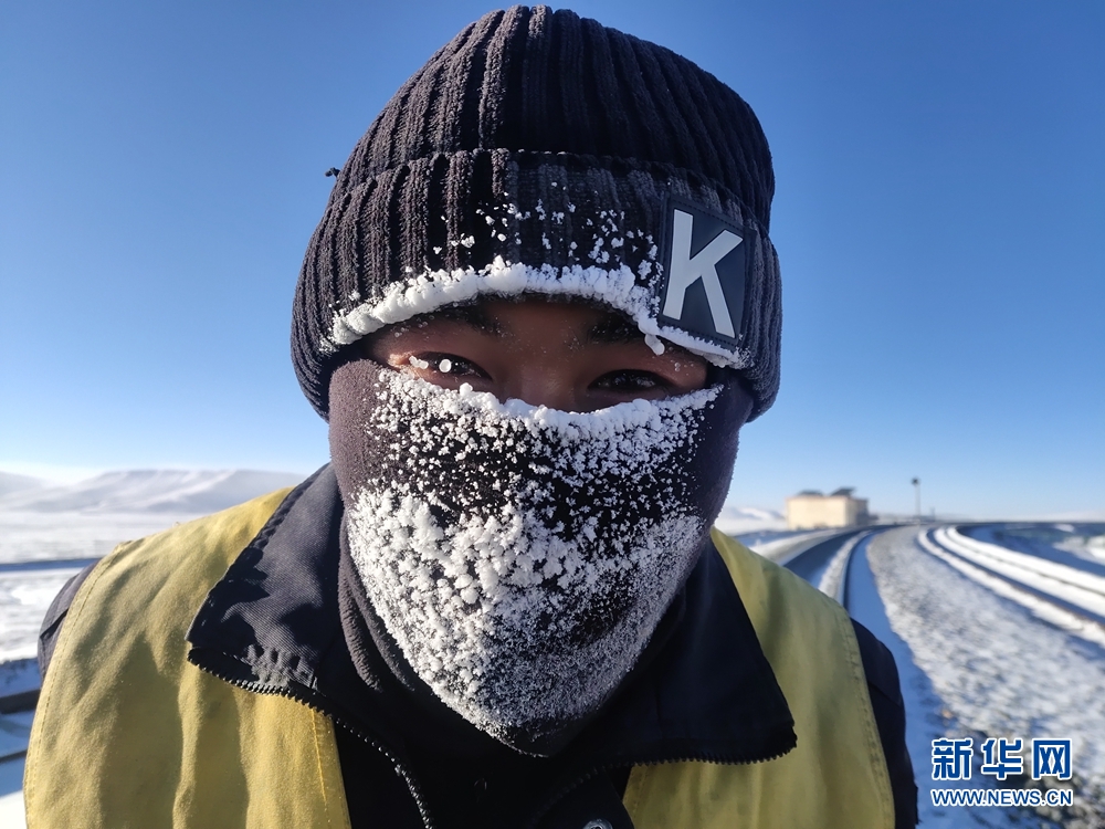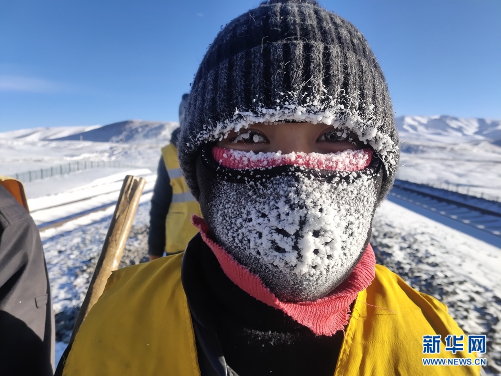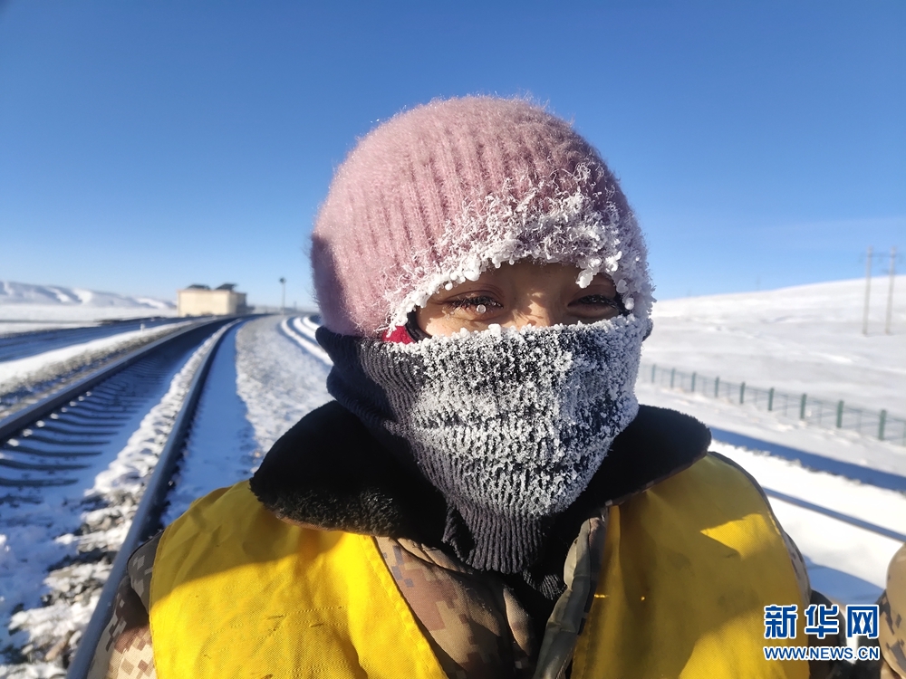 一天的工作結(jié)束后,她們的帽子、脖套上已布滿厚厚的冰霜。圖為中國鐵路青藏集團(tuán)公司格爾木工務(wù)段職工才仁文毛。